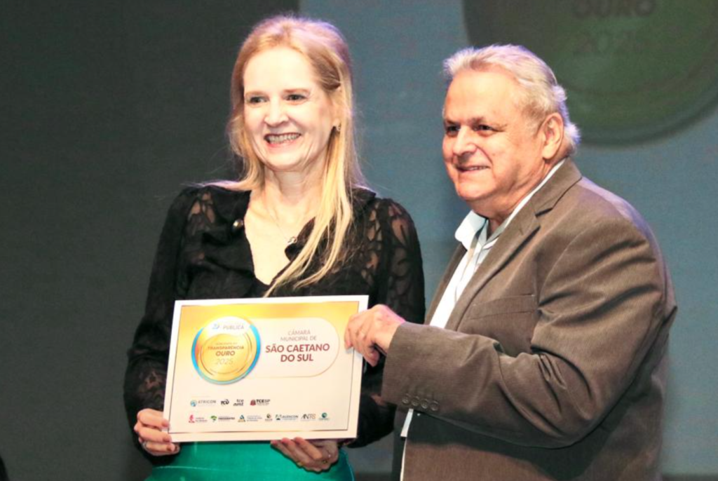 A Câmara Municipal de São Caetano do Sul foi agraciada com o Selo Ouro de Transparência, concedido pelo Tribunal de Contas do Estado de São Paulo (TCESP), durante o 30º Ciclo de Debates com Agentes Políticos e Dirigentes Municipais, realizado em Santos, no dia 23 de abril. A honraria foi entregue pela presidente do TCESP, Cristiana de Castro Moraes, ao presidente do Legislativo, Doutor Seraphim (PL), constituindo importante reconhecimento às práticas de governança e transparência da instituição.
