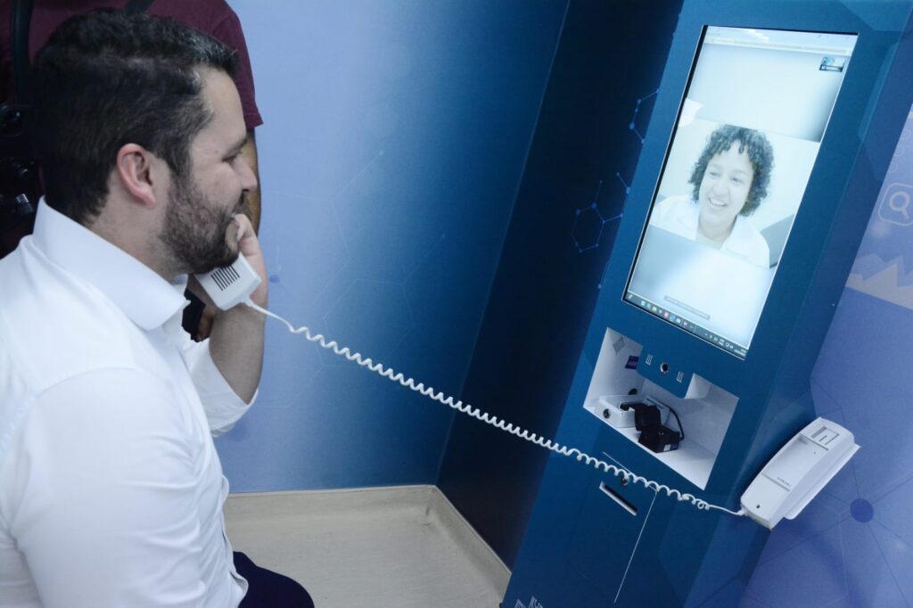 “O paciente coloca o dedo no equipamento e confere 16 parâmetros da sua saúde: a pressão arterial, oxigenação e até a hemoglobina, sendo que, normalmente, seria preciso tirar sangue para saber se o paciente está com anemia. Em poucos segundos, do outro lado da tela, um médico passa a atender com todos esses dados da triagem e, se precisar coletar mais dados, como medição de febre ou verificação de dor de ouvido, também tem equipamento”, detalhou Gilvan.